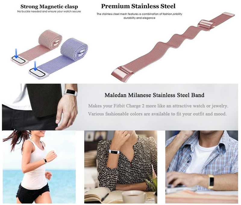 Type:For Fitbit charge 2 Band New Magnetic Milanese stainless steel belts
