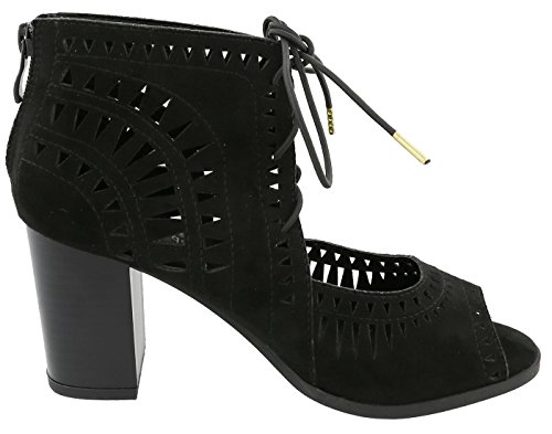 Product DescriptionTop Moda Women's peep toe bootie features vegan-friendly leatherette with lasercut detail. Lace up front zipper back. Imported.0