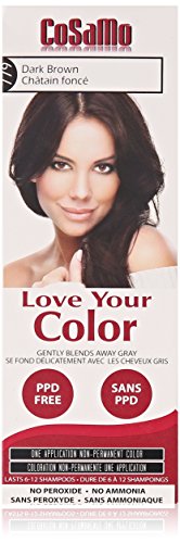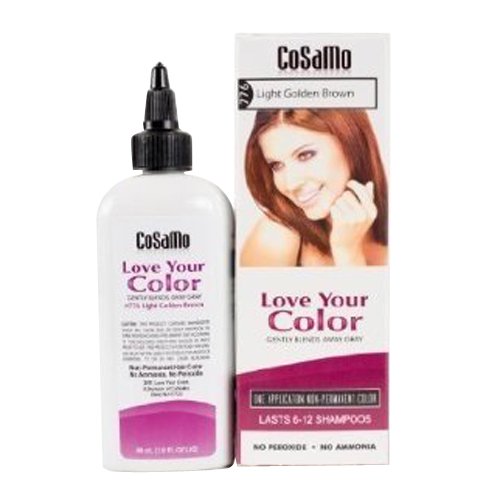 Gently Blends Away Gray. Non-permanent Color. Lasts 6-12 Shampoos. Includes Revitalizing Conditioner. No Ammonia, No Peroxide, No PPD. Gently blend away gray hair with Love Your Color Non-permanent hair color to volumize and add shine to your hair. No Peroxide and No Ammonia means Love Your Color is as gentle as your shampoo. The easy, one-step application will wash away your grays in an average of 20 minutes. Love Your Color restores healthy-looking shine and feels like you just stepped out of the salon. Warning: Keep out children's reach. Do not use on hair that has been highlighted, lightened or over processed.Feature
