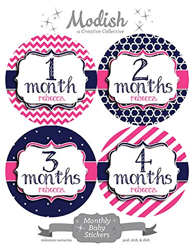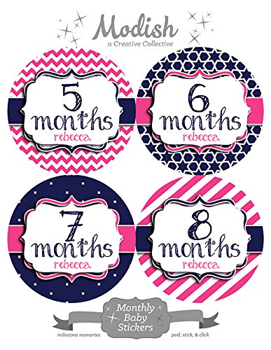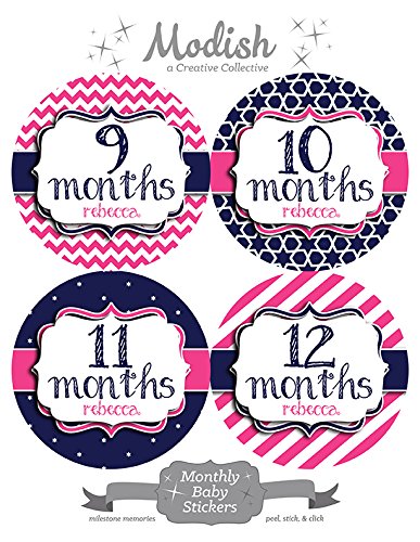 -. Title : 12 Monthly Baby Stickers, Pink & Navy Blue, Girl, Baby Belly Stickers, Monthly Onesie Stickers, First Year Stickers Months 1-12, Pink & Navy Blue, Nautical, Baby Girl