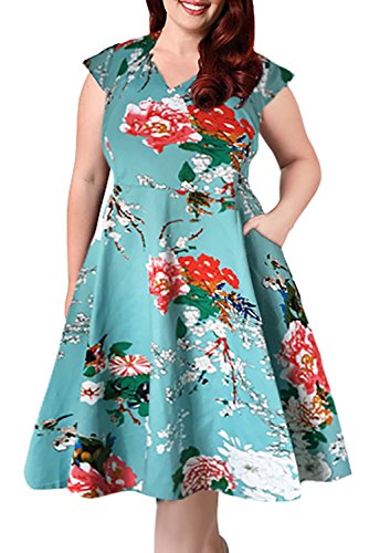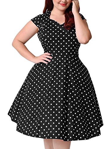 Nemidor Women's 1950s Style Polka Dot Pattern Vintage Plus Size Swing Dresss