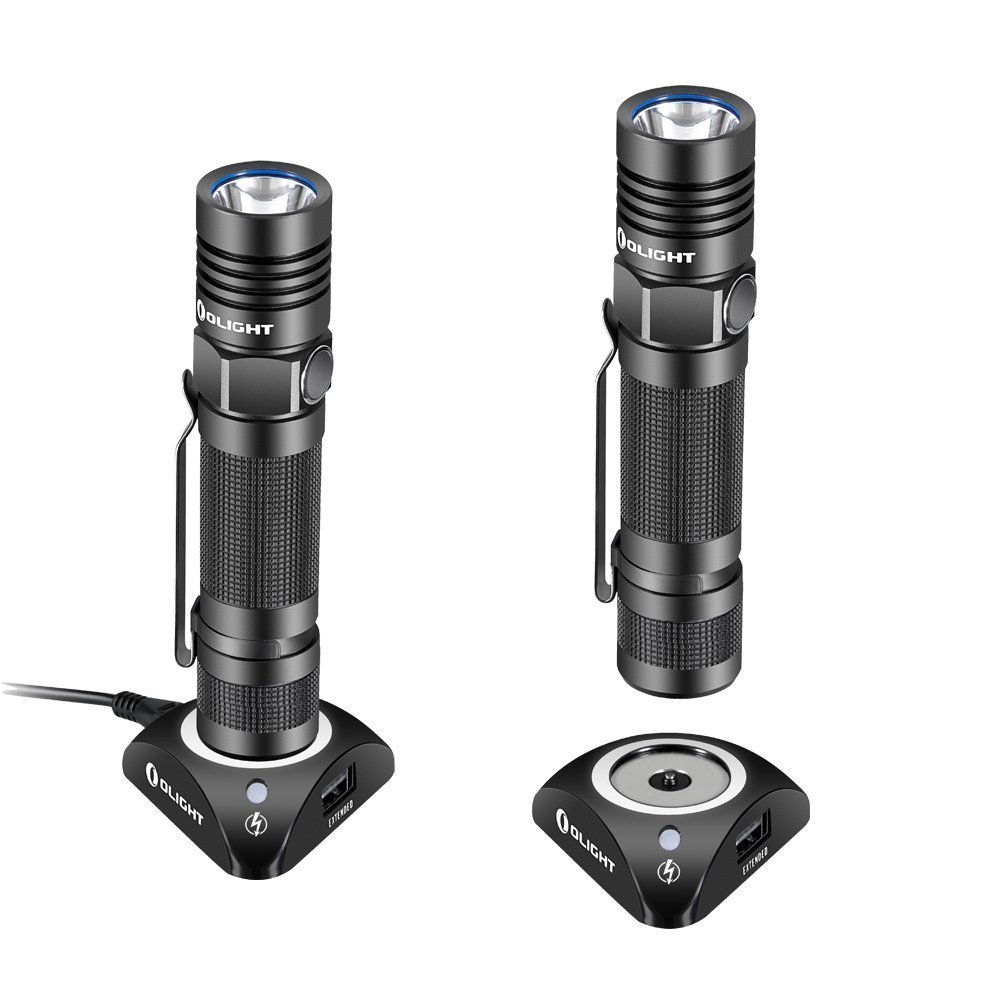 OLIGHT S30R BATON 2 is a rechargeable compact light that can be recharged with the included desktop stand.