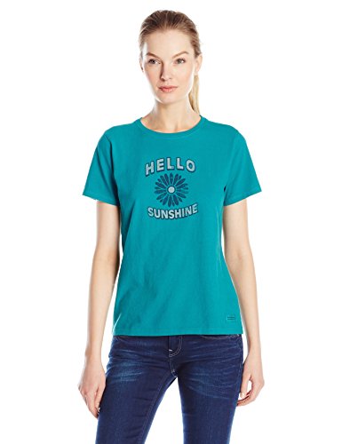 -. Binding : Apparel -. Brand : Life is Good -. Color : Bold Pink -. Department : Womens -. Feature : Slight waist shape / Rib at the neck and Self-fabric taping from shoulder to shoulder / The Life is good company donates 10% of all sales to kids in need -. Label : The Life is good Company -. Manufacturer : The Life is good Company -. ProductGroup : Sports -. ProductTypeName : OUTDOOR_RECREATION_PRODUCT -. Publisher : The Life is good Company -. Studio : The Life is good Company -. Title : Life is good Crusher Tee Tried & True Hello Flower Cloud White