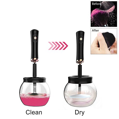 - Automatic Efficient Cleaning: Electric makeup brush cleaner portable cleans and dries makeup brushes quickly,thoroughly deep clean 360 rotation in just seconds! Remove all bacteria clinging to surface makeup brush