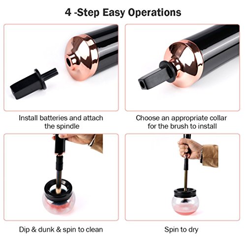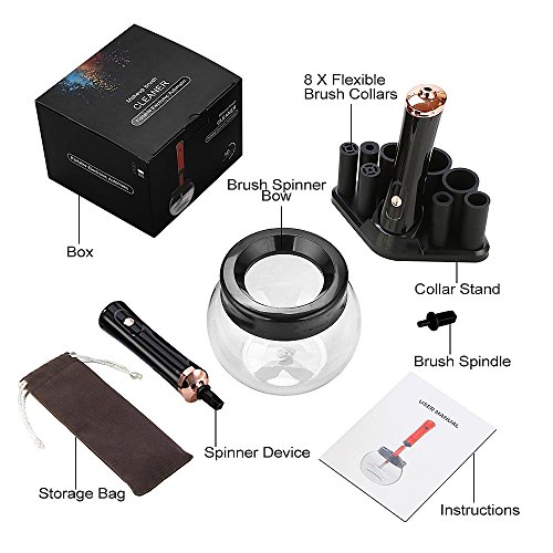 - Economical and Effective: Clean and dry spinning makeup brush thoroughly in just 10 seconds. 8 different sizes of rubber shapes are a perfect fit for all make-up brushes that will enhance your makeup experience and save you time and money