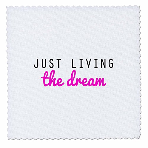 3dRose Just Living the Dream-Hot Pink Quilt Square, 14 x 14"