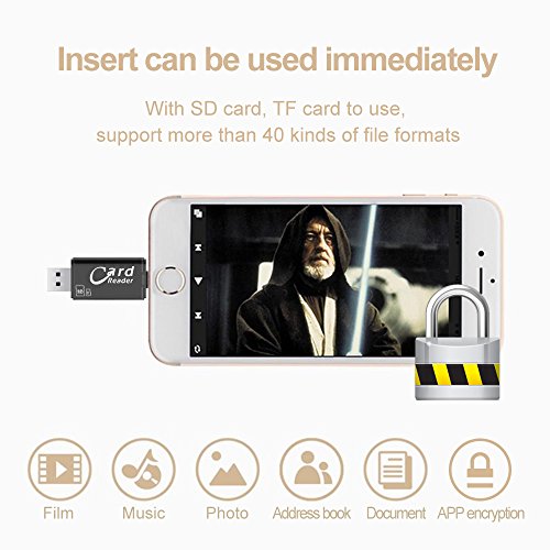 • Cards card reader to iphone, no Storage inside the Card Reader. Support 8G~128G SD and TF card (Memory Cards are NOT Included). Reading speed: 20~40M/S; Writing speed: 11~15M/S.