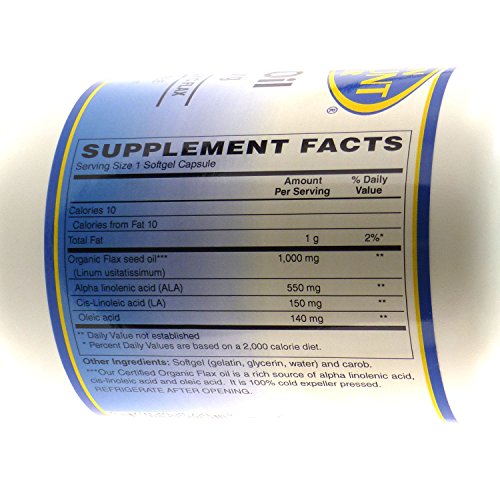 Studio : Vitamin Discount Center Publisher : Vitamin Discount Center Product Description Flax Oil is a natural reservoir for the omega-3 fatty acid, alpha -linolenic acid (ALA). Our Certified Organic Flax oil is a rich source of alpha linolenic acid, cis-linoleic acid and oleic acid. It is 100% cold expeller pressed. As a dietary supplement, adults take one (1) softgel capsule, one (1) or two (2) times daily with meals, or as directed by a health care professional. Store in a cool, dry place and away from direct light. These statements have not been evaluated by the Food and Drug Administration. This product is not intended to diagnose, treat, cure, or prevent any disease. 0