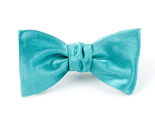 100% Woven Silk Aqua Solid Satin Self-Tie Bow Tie