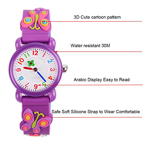 That's good choice for kids Birthday Gift. It's perfect fits for 3-10 years old Kids to learning how to tell Time. If Your child is learning how to read time or understand how to tell time in a fun and engaging world effective, it's best choice for kids, they will have their "OWN WATCHE". Waterproof: