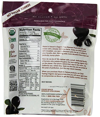 Made In Nature Organic Plums, Pitted, Dried and Unsulfured, 6-Ounce Bags (Pack of 6)