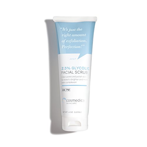 Cosmedica Skincare Glycolic Acid Facial Scrub gently regenerates and stimulates the skins natural renewal process. Fine lines are diminished and discoloration is evened out. Skin tone is given a noticeable clarity and glow. Plant extracts nourish and bolster skin cells, and plant oils diminish scarring and boost moisture. MSM drives ingredients deep into the epidermal layer, and Salicylic Acid prevents breakouts and other problematic skin conditions.