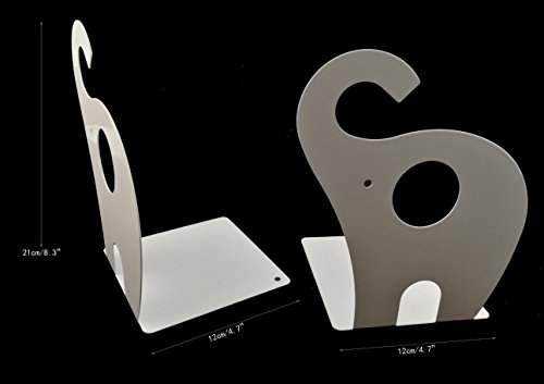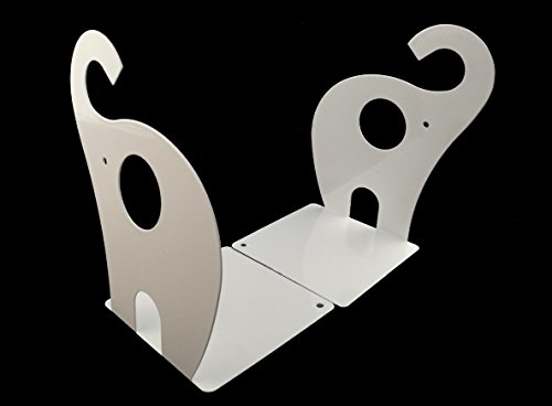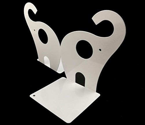 Cartoon Cute Elephant Pattern Nonskid Metal Office Desk Bookends (White)
