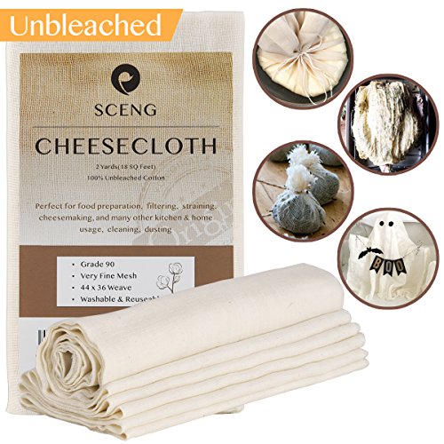 MANY HOUSEHOLD USES - The cheesecloth can be used in a great number of different household and professional applications. Spice bags, canning, kombucha scoby, cheese, yoghurt and wine making, keeping chicken or fish intact when poaching, roasting turkey or chicken, squeezing citrus juice without seeds, fine surface polishing, staining, cleaning, dusting, Halloween decoration, ghostmaking.