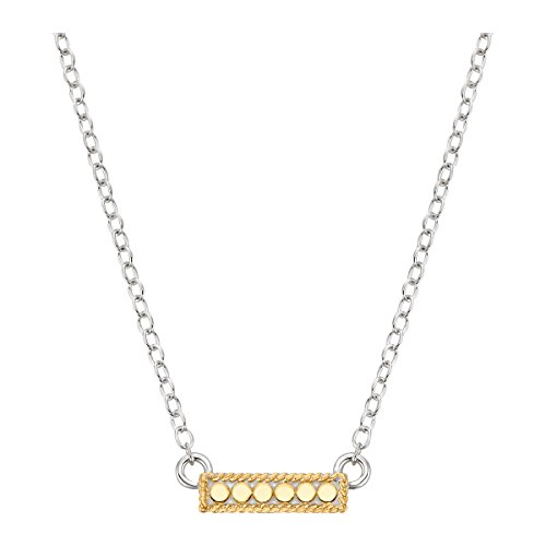 Wire-rimmed Gold-Plated and Sterling Silver mini revesible bar necklace on 16" to 18" adjustable silver chain.Feature