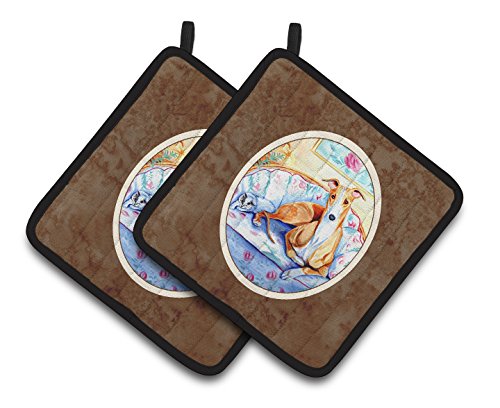 Caroline's Treasures Whippet Waiting on You Pair of Pot Holders 7081PTHD, 7.5HX7.5W, Multicolor
