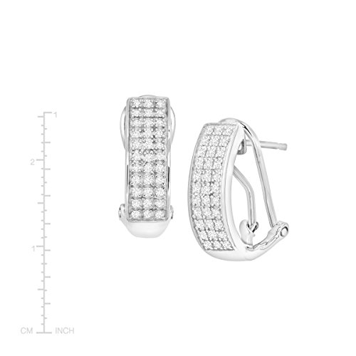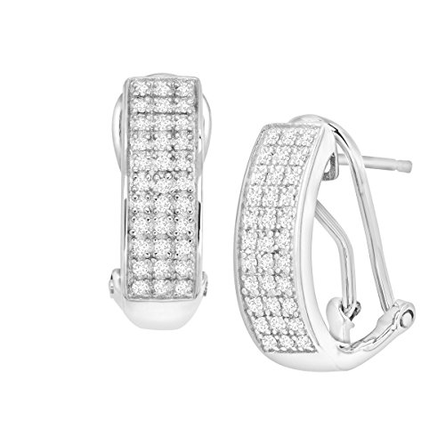Add this piece to your collection to accent your classic style! Round-cut diamonds, totaling 1/4 ct, are bead-set on a petite hoop frame, crafted in sterling silver and finished with posts with French clips. Pieces measure 5/8 by 3/16 inches.Feature