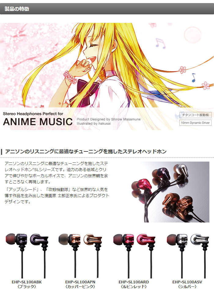 ●アニソンのリスニングに最適なチューニングを施したステレオヘッドホン“SLシリーズ”です。