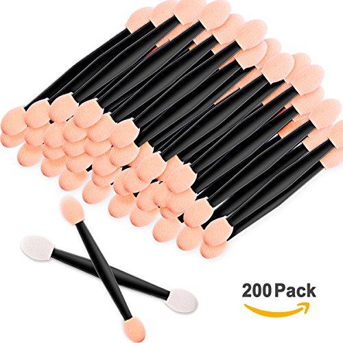 Amariver 200 Pack Disposable Eyeshadow Brush Sponge Tipped Oval Makeup Tool Dual Sides Eyeshadow Brush Comestic Applicator for Girls Lady Women...