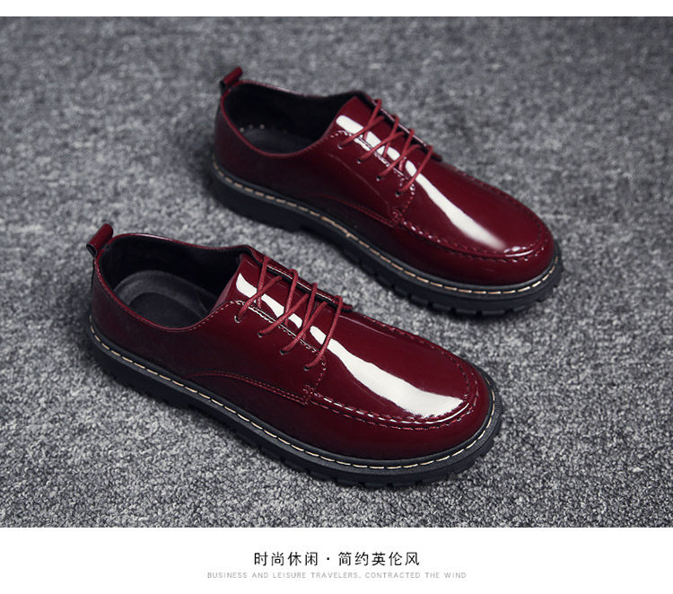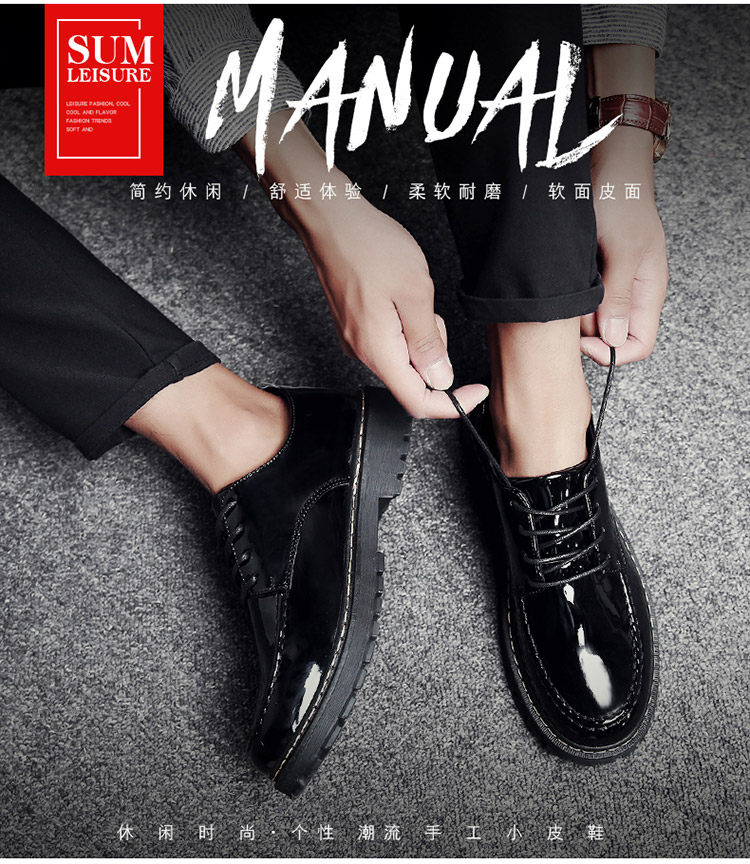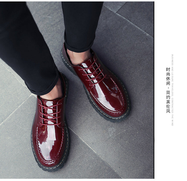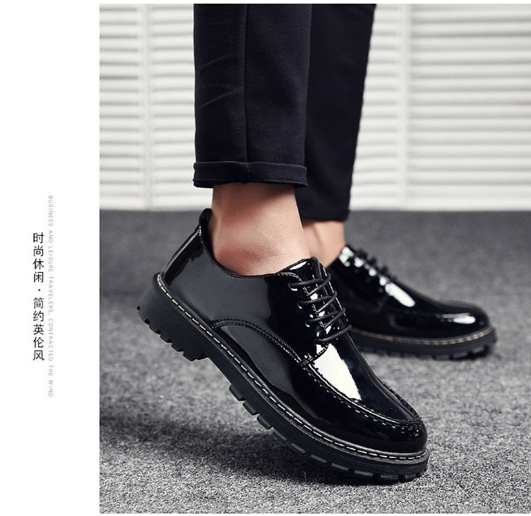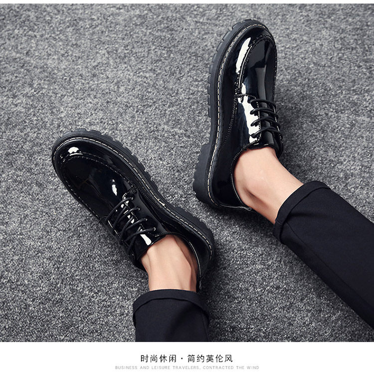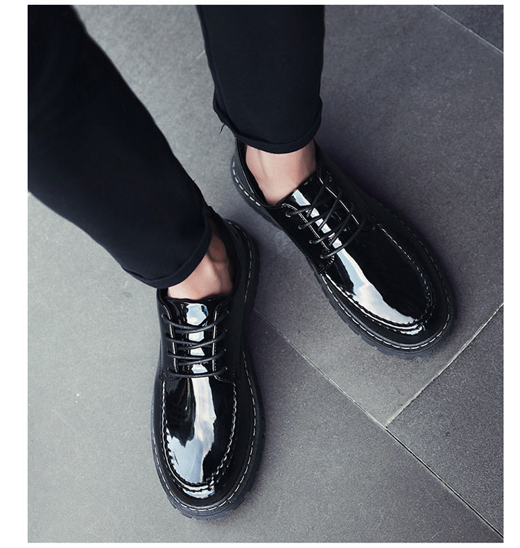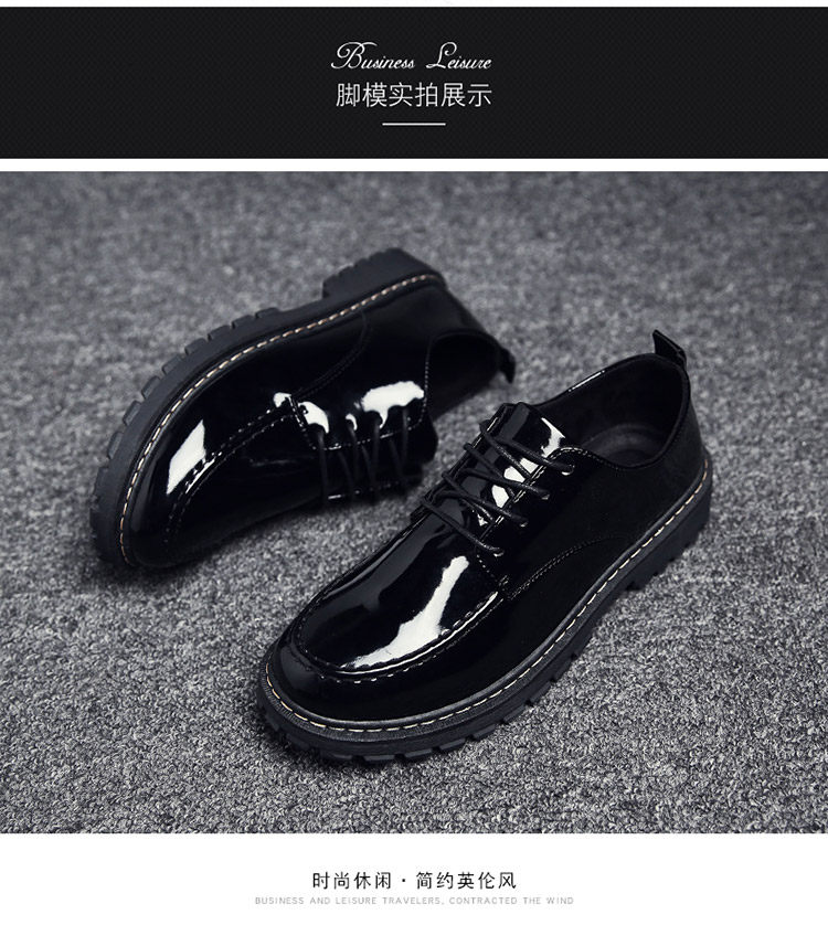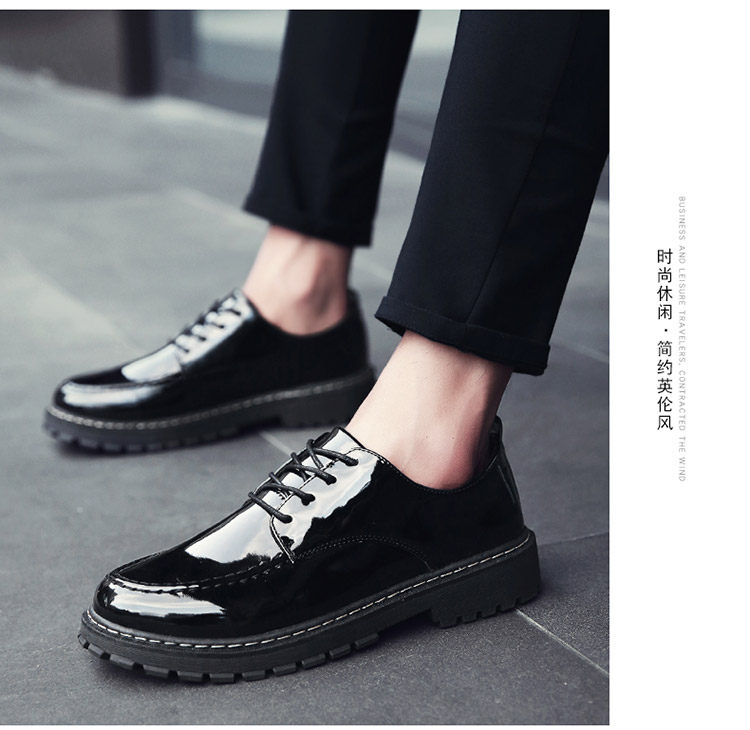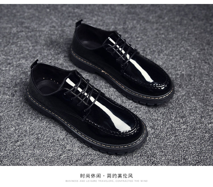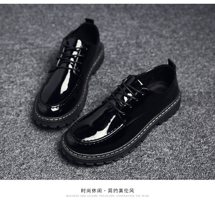 秋冬男鞋子韩版潮流休闲鞋漆皮亮面板鞋百搭低帮皮鞋工装马丁短靴