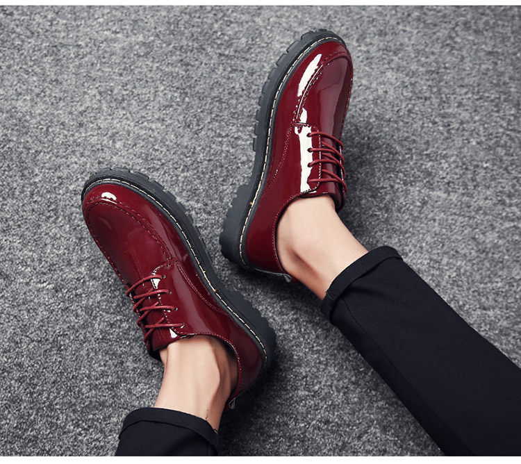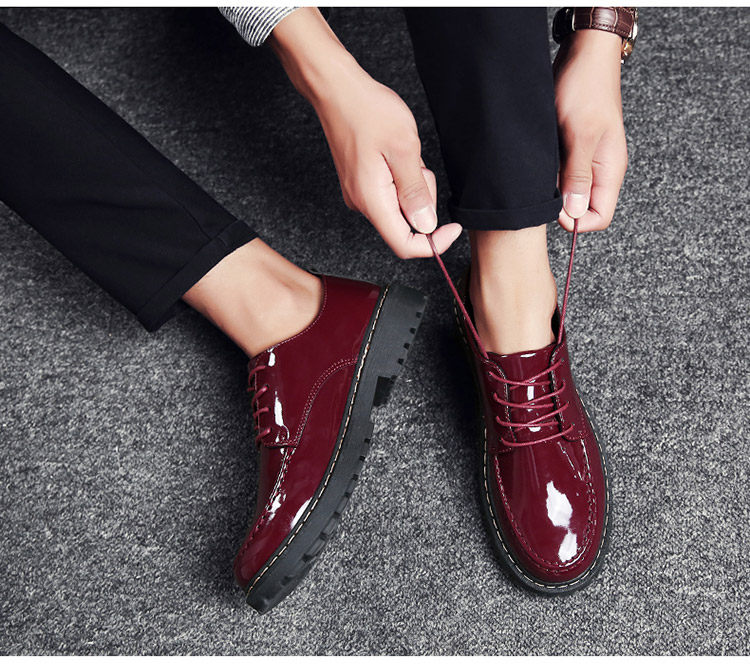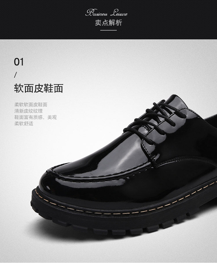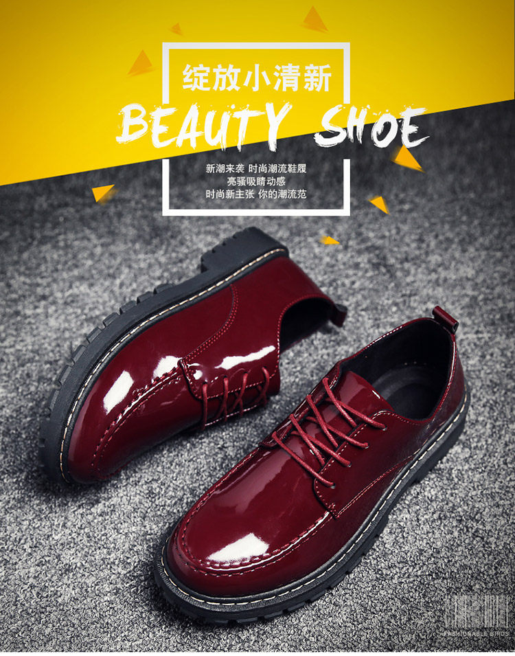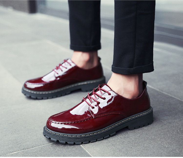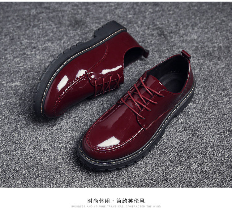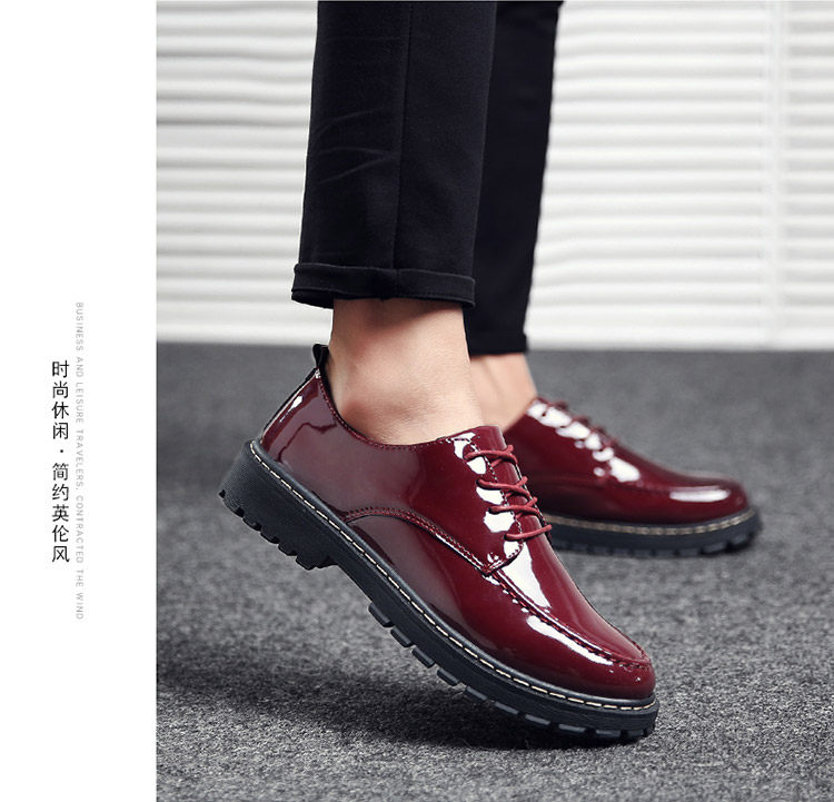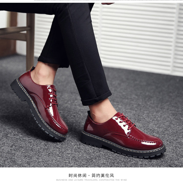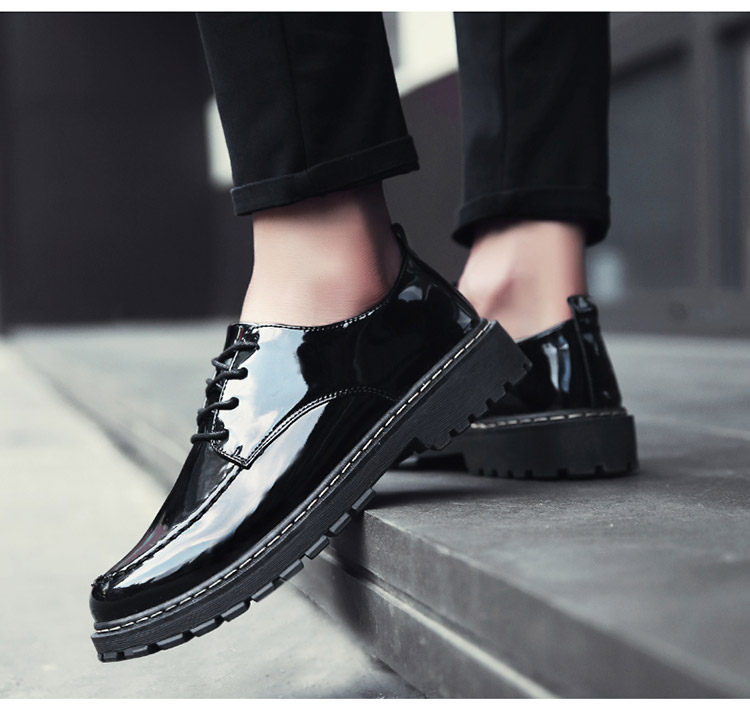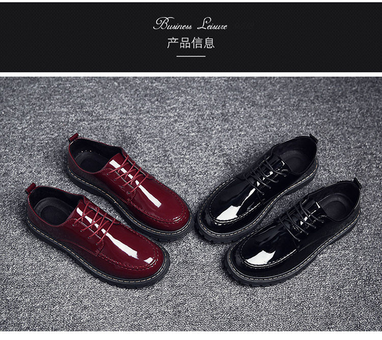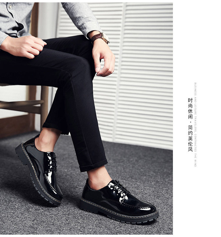 秋冬男鞋子韩版潮流休闲鞋漆皮亮面板鞋百搭低帮皮鞋工装马丁短靴