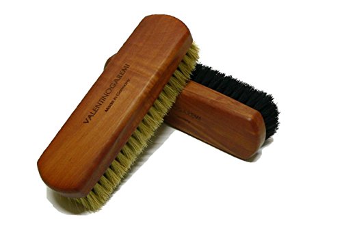 Product Description Superb Quality Shoe and Boots Brush - This traditional polisher made by the artisans in Germany it will impress every user with its ultimate shoe care results. Intended to perform shining and polishing tasks to all kind of leather footwear this beautiful well-made shoe brush incorporates natural horsehair bristles, dark stained pear wood handle with Valentino Garemi's logo printed. Perfect Tool for Multitude of Shoe Care Tasks - the shoe brush can be wisely used to perform more than polishing or shining regular tasks since the stiff and dense horsehair bristles will allow the users for footwear cleaning regardless shoe material. The shoe cleaning action can be perform on special fabric as GoreTex or SympaTex, suede or nubuck footwear or even garments or house furniture. Excellent remover for dry stains and accumulations as dirt, dust, road grim, salt marks, dry foods, etc.. Recommended for All Types of Leather Footwear - due to its regular size and shape, the shoe brush will execute excellent shoe care jobs and it will be a great fit to any shoe care kit, travel shoe shine kit or just part of your shoe collection as a shoe care accessories addition - size is 6 3/8 inch Long x 1 ¾ inch wide and 1 inch long thick and dense bristles. The type of shoes that brush can be use on are: Loafers, Brogues, Oxfords, Sneakers, Trainers, Ankle Boots, etc... VALENTINO GAREMI - we are a small family own business, focused on finding, creating and offering only outstanding quality household products. Driven by passion and modesty, we committed to 100% satisfaction guaranteed to all our valuable customers. 0