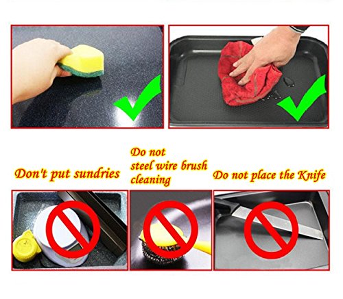 Material: T-304 food stainless steel surface less stick to food, Smooth edge no rough spots. Heavy duty – made of thick gauge mate pan