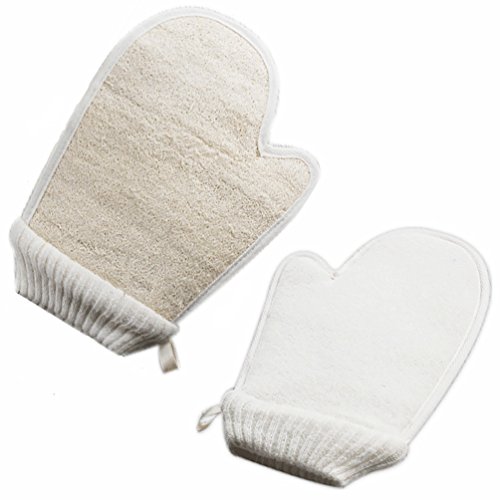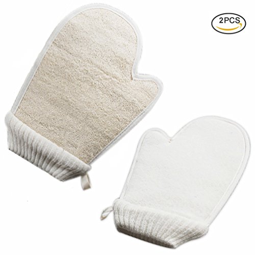 Pretty See Exfoliating Loofah Glove Bath Luffa Pad Loofah Sponge Scrubber for Men, Women and Kids, Rib Cuff Design, Set of 2