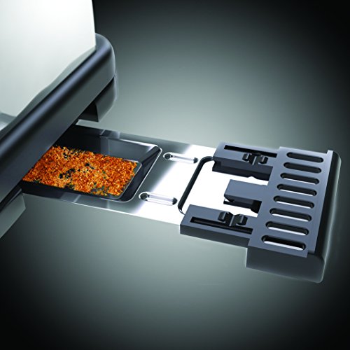 -. Feature : 6 einstellbare Bräunungsstufen / Extra breiter Toastschlitz / Hebefunktion - Für die sichere Entnahme der Brotscheiben / Automatische Brotzentrierung / Brötchenaufsatz / Krümelschublade / Stopptaste