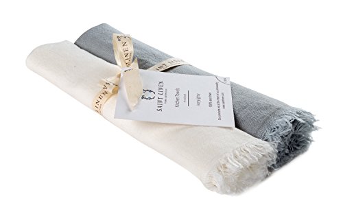 SOFT & HIGHLY ABSORBENT – Considered very important kitchen tool, second only to a knife, good quality Kitchen Towels are indispensable kitchen companion. Our Kitchen Towels are stonewashed to ensure soft fabric that's comfortable to touch & feel, boast incredibly high absorption for quickly drying dishes or hands, and come in a set of 2 elegant colors – Ivory & Gray Kitchen Towels. One of the sides is fringed by hand to ensure a modern look & enhance aesthetic appeal.
