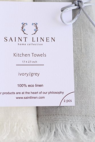 Stonewashed Linen Kitchen Dish Towels – Set of 2 Towels – Ivory & Grey – Made from 100% Natural European Flax – High Absorption, Soft Fabric & 100% Lint-Free – Safe for Machine Wash & Drying
