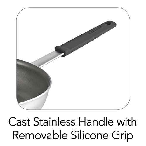 Tramontina's Professional Fusion Fry Pan features the new Fusion Rivet System which provides a rivet-less, smooth interior cooking surface. This clever and exclusive system provides easy cooking and effortless cleanup, while maintaining all the strength and durability of a traditional riveted handle assembly. The rivet-less cooking surface, combined with the advanced PFOA free nonstick, provides high performance and excellent food release. The Professional cookware collection from Tramontina is designed to stand up to the rigors of restaurant kitchens—and offers an excellent value for home cooks. Ideal for frying, scrambling, sautéing and searing your favorite recipes, the fry pan is constructed of commercial-grade; heavy-gauge aluminum distributing heat quickly and evenly, while the reinforced nonstick interior allows food to easily release from the pan for effortless cooking and cleanup. The cast stainless steel handle adds support and features a removable, silicone, soft-grip for maneuverability. Part of the TRAMONTINA PROFESSIONAL collection, which features items designed and crafted to optimize performance in both commercial and gourmet kitchen; design, material, finishes and fixtures are carefully selected to provide exceptional durability to match the expectations of professional chefs.Feature