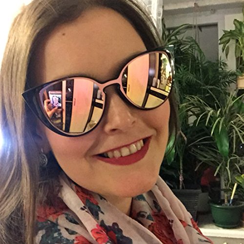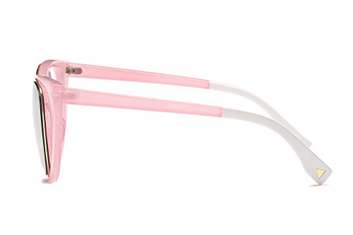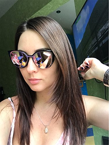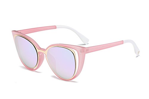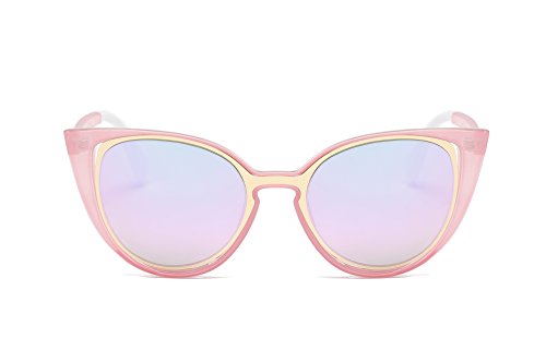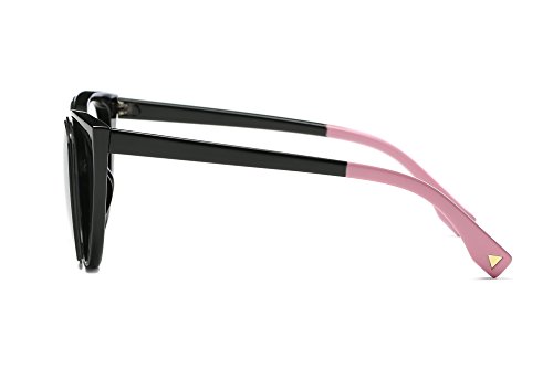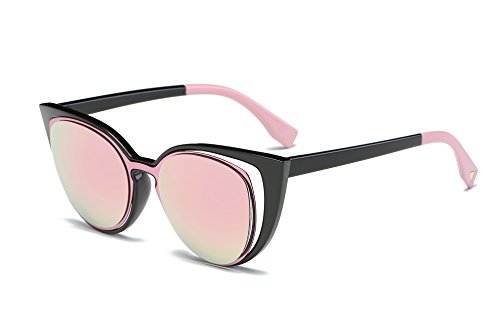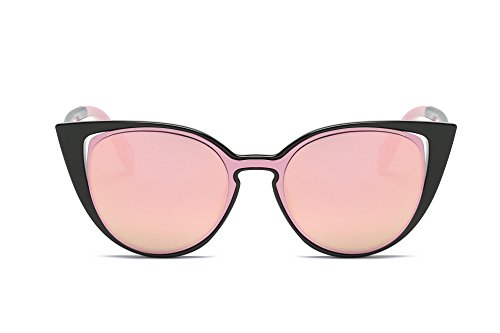 Amomoma Cat Eye Sunglasses Women Brand Designer Retro Pierced Female AM2015 Black Frame/Pink Lens