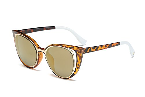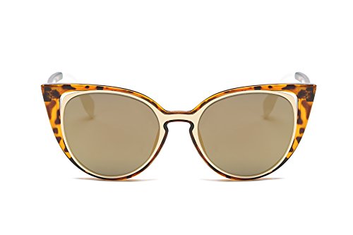 Amomoma Cat Eye Sunglasses Women Brand Designer Retro Pierced Female AM2015 Leopard Frame/Gold Lens