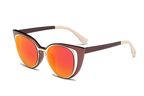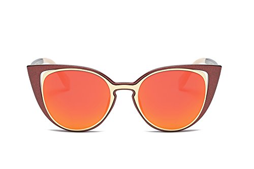 Amomoma Cat Eye Sunglasses Women Brand Designer Retro Pierced Female AM2015 Brown Frame/Orange Lens