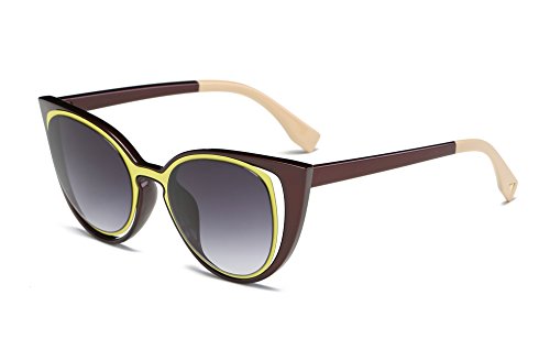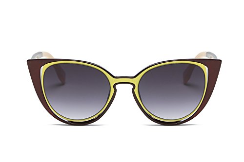 Amomoma Cat Eye Sunglasses Women Brand Designer Retro Pierced Female AM2015 Brown Frame/Grey Lens