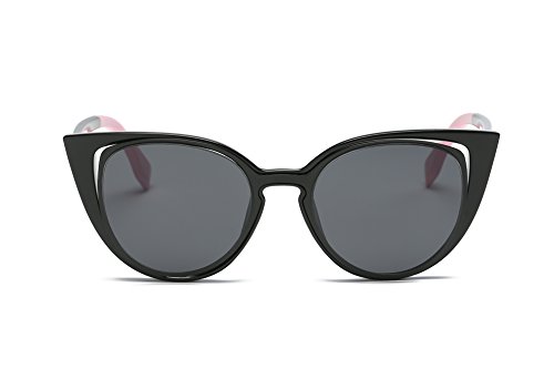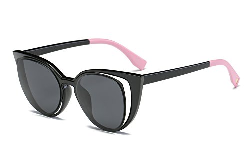 Amomoma Cat Eye Sunglasses Women Brand Designer Retro Pierced Female AM2015 Black Frame/Grey Lens