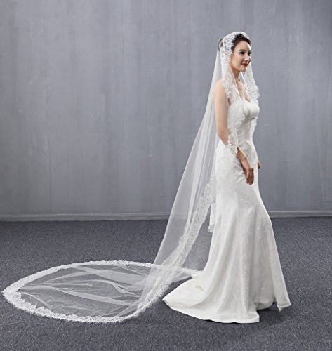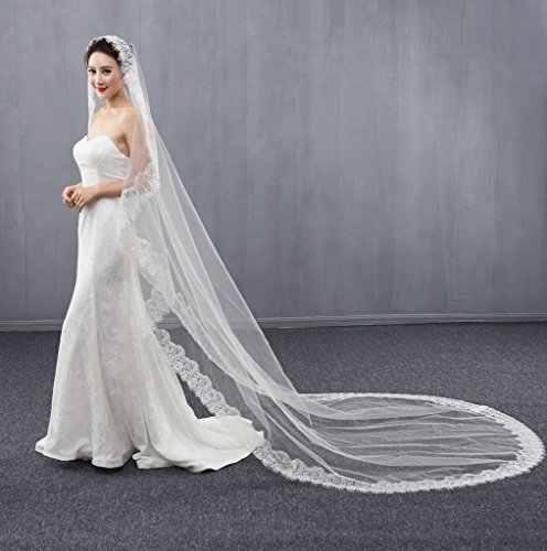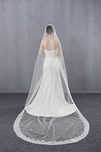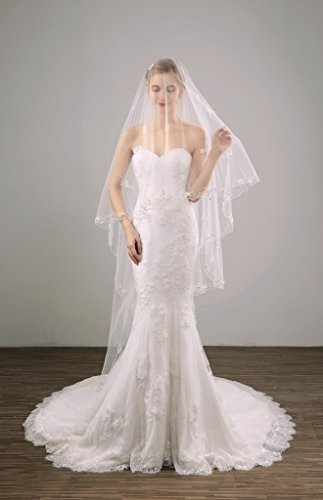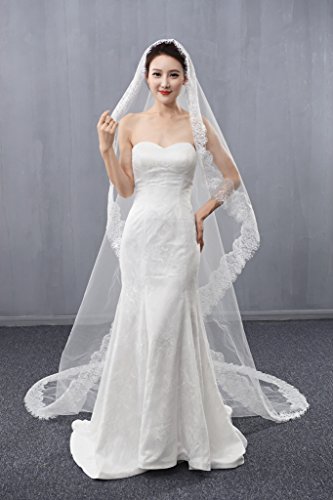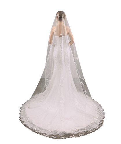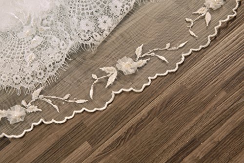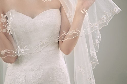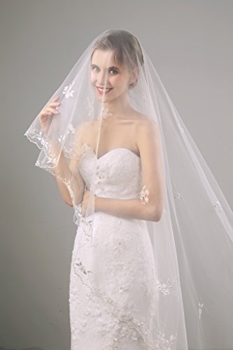 HYSENM Women 1 Tier Elegant Tulle Embroidery Long Wedding Bridal Veil