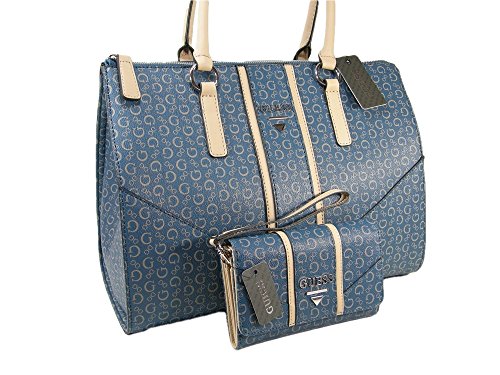Product Description 2 Piece Set = 1 Purse and 1 Wallet Description: Blue exterior with tan trim and silver hardware. Zipper top closure. The interior is fully lined and contains a zipper pocket and 3 slip pockets. Measures approximately 14 inches across by 11 inches high. Top satchel style double handles with a drop of 6.5 inches. Tag Information: Style: SV644024 Name: Nichols Color: Midnight Matching Wristlet/Wallet: Tri-fold with snap closure. It measures 6.5 inches by approximately 4.5 inches. The interior contains 3 credit card slots, a clear ID window 4 larger slip pockets and a zipper pocket for change The back of the wristlet has a pocket. Tag Information: Style No.: SV644042 Name: Nichols SLG Color: Midnight 0