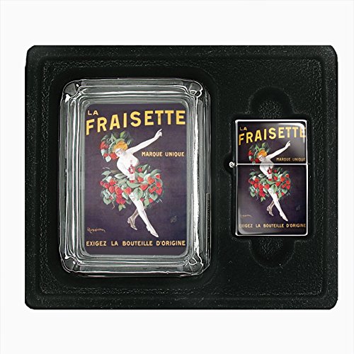 (Perfection In Style)/Household Supplies/Lighters Matches/DIRECT FROM USA/Italian Illustration Woman Wearing Strawberries Glass Ashtray Oil Lighter Gift Set D-220