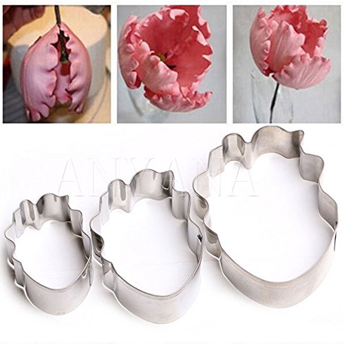 Anyana 3Pcs Cutter Set Cake Fondant Flower Icing Tulip Petal Stainless Steel Parrot Mold gum paste sugarcraft