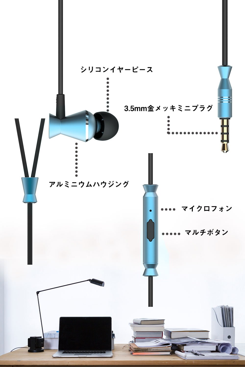 Earphone main body is a fine design combining polished aluminum material with mirror surface polished metal ring.