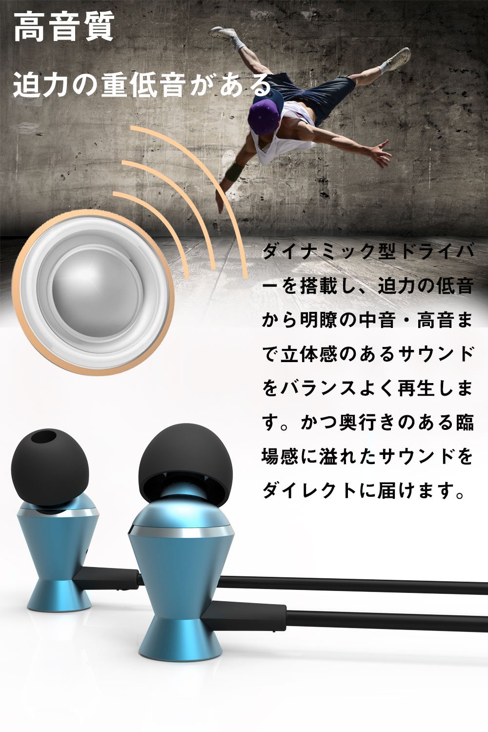 It is becoming difficult to come off by bringing the internal driver to the ear tip side and bringing the center of gravity towards the ear.