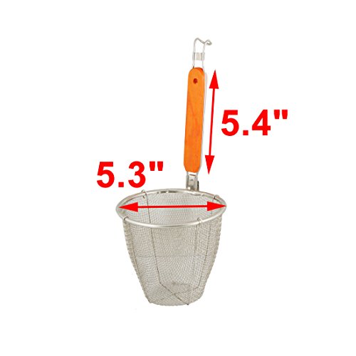 uxcell Wooden Handle Dumplings Noodles Mesh Strainer Kitchen Ware 13.5x12.5cm