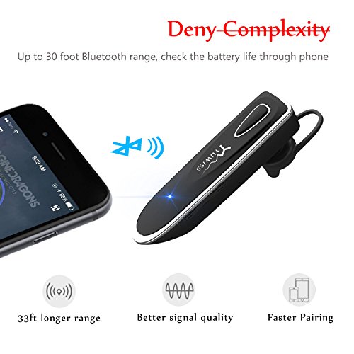 300H Standby Bluetooth Earpiece with Mic, Yuwiss Wireless In Ear Earbud Headphones Car Headset with 20 Hours Hands-free Calling for iPhone 6 7 Plus, Driving, Samsung Galaxy (Black)