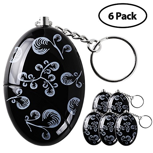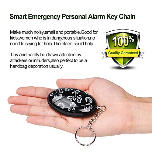 -. Feature : 120dB LOUD SOUND. The alarm sounds great, people can draw attention even in a far distance. Good for adventurer who is in dangerous situation. The sounds could last 40-60 minutes and the sound will be gradually loud, in addition, it will not hurt your ears / MULTI-FUNCTIONS and Environmental Design. Black color and special painting style make this alarm more unique and fashionable while providing self defense protection. The alarm can be reused, Non-disposable product. And the battery is replaceable battery / MANY USES. Fit for: Students, Jogger, Elderly, Kids, Women, Night workers. It's also a security necessary supply for traveling, hiking, camping and walking the dogs. The design and function is ideal for all ages / SMALL AND PORTABLE. This personal alarm keychain is small and portable, can be attached on ladies bag, schoolbag, backpack, belt loops, suitcases, keys, dog Leash. And it can be brought on board a plane, very convenient / WITH INSTRUCTIONS AND GUARANTEED. There is a small instruction paper inside the box. Within one year, any fault caused by non-artificial reasons we will maintain freely, please feel free to contact us