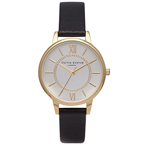 -. Title : Olivia Burton Women 's 30 mmブラックレザーバンドスチールケースクオーツシルバートーンダイヤルアナログWatch ob14wd04