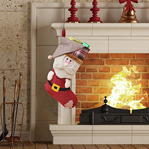 Christmas Stockings, 18'' Xmas Stockings Hanging, 3D Santa Character Santa Gifts Socks Party Favors Decorative Hanging Ornaments
