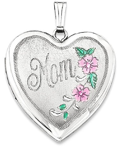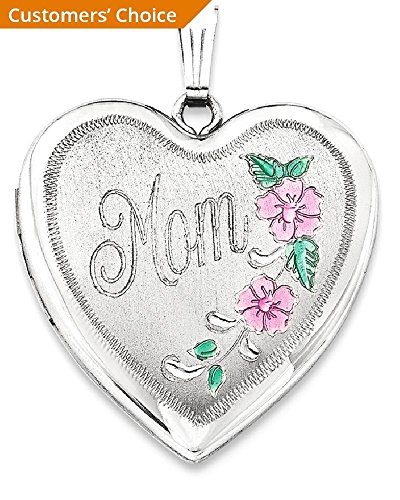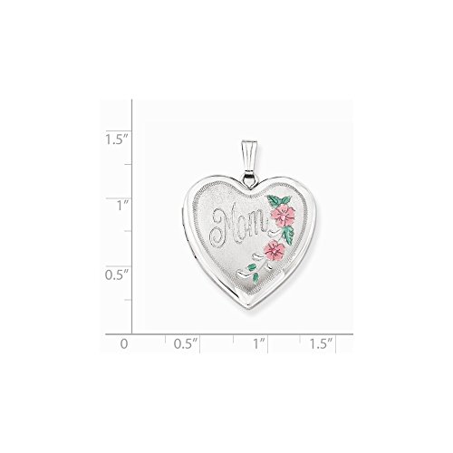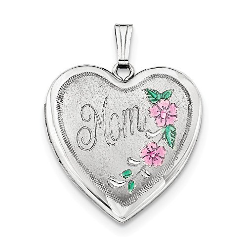 ICECARATS DESIGNER JEWELRY 925 STERLING SILVER 24MM ENAMELED FLORAL MOM HEART PHOTO PENDANT CHARM LOCKET CHAIN NECKLACE THAT HOLDS PICTURES