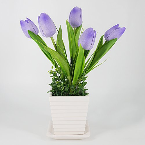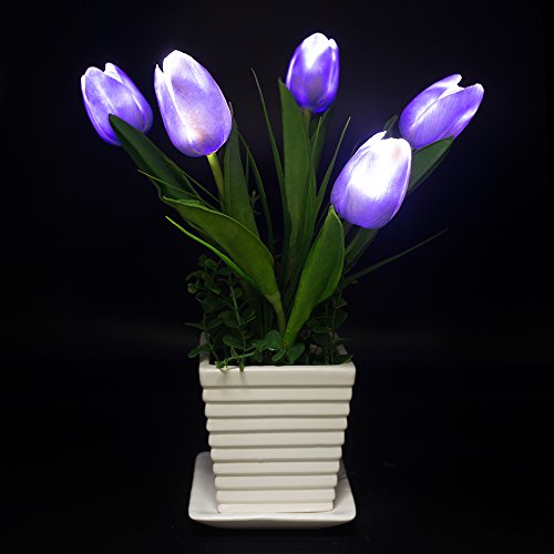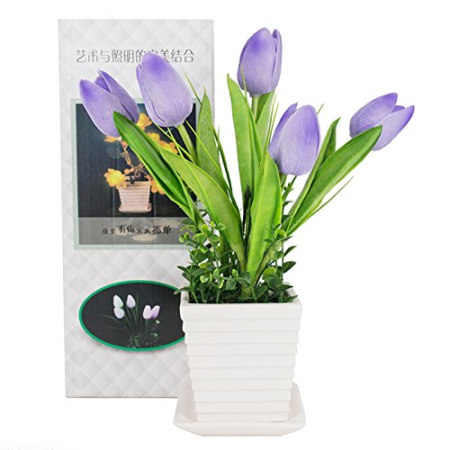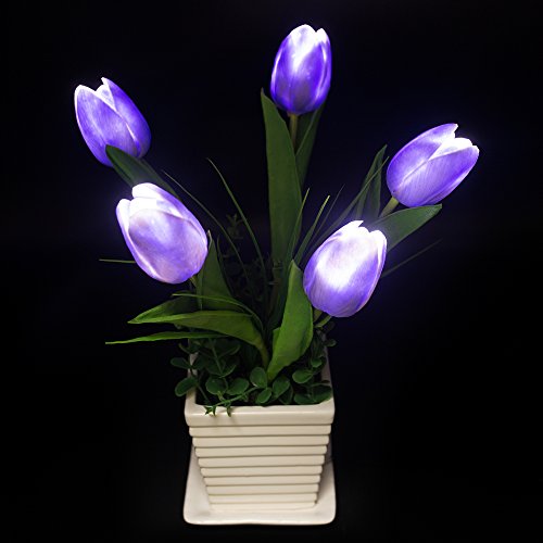 Beautiful Tulip Night Light, LED Flower Night Light 5 Bloom Tulips, Advanced Simulation Artificial Flower Bonsai with LED Lighting (Romantic Purple)